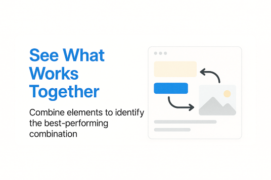 Set it up easily using the visual no-code editor: select the elements you want to test, define the variations, and let CustomFit.ai handle the rest. The platform will automatically create all possible combinations, distribute traffic intelligently, and show which combination delivers the best performance.